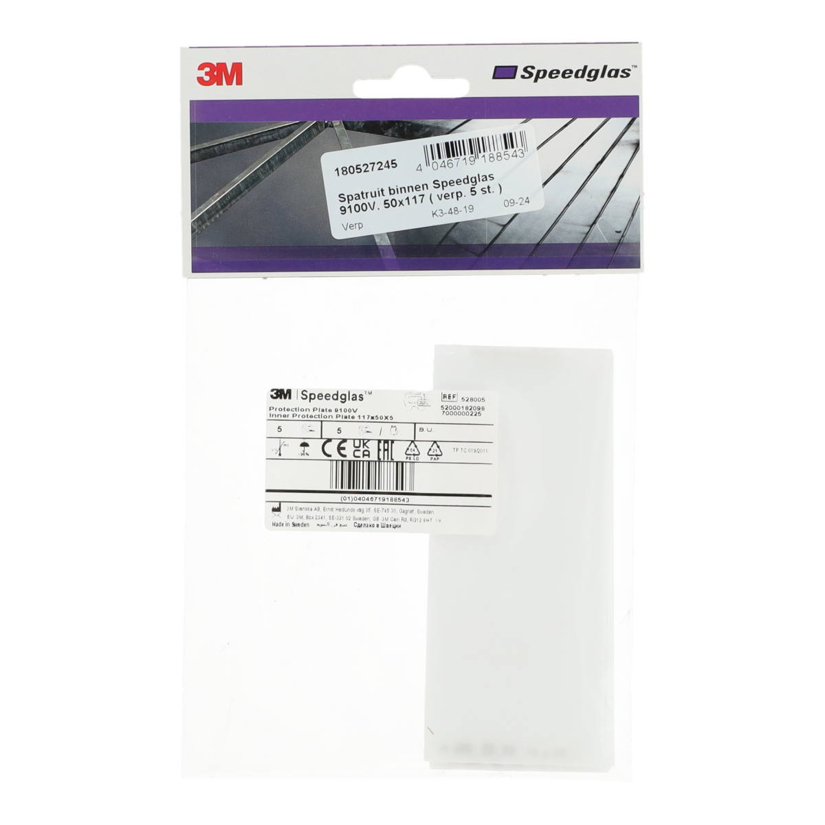 De 3M spatruit binnen Speedglas 9100V (50 x 117 mm) is een essentieel vervangingsonderdeel dat het automatische lasfilter van je lashelm beschermt tegen lasspetters, stof en krassen. Door het gebruik van deze binnenruit blijft je zicht helder en verleng je de levensduur van je lashelm.