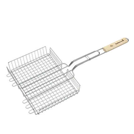 Het Barbecook dubbel rooster met houten grip maakt barbecueën eenvoudiger en veiliger. Dankzij het dubbelzijdige ontwerp klem je vlees, vis of groenten stevig vast tussen de twee roosters, waardoor je gerechten makkelijk in één beweging kunt omdraaien. Dit voorkomt dat ingrediënten aan het rooster blijven plakken of uit elkaar vallen.