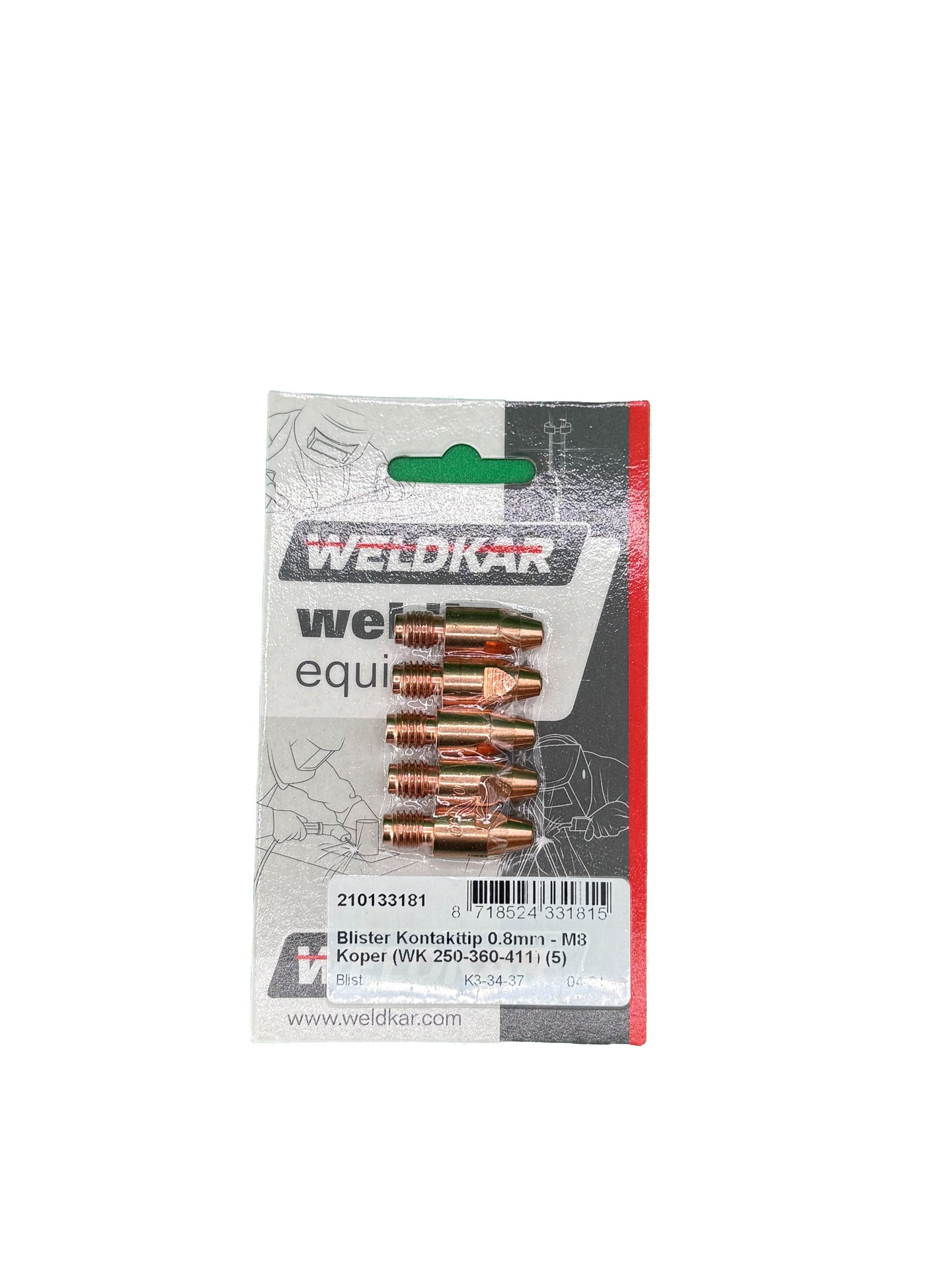 Kontakttip 0.8mm - M8 koper weldkar 250-360-411 5 stuks
