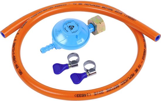 Slang + Reduceerventiel Set – 1,5 meter Propaan | Inclusief Slangklemmen – 30 mbar, 1,5 kg/uur