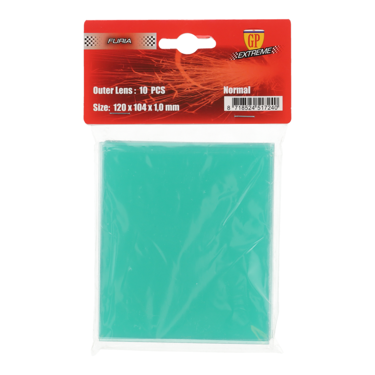 De spatruit buiten voor de Furia GP Extreme lashelm is een essentieel vervangingsonderdeel dat het automatische lasfilter beschermt tegen lasspetters, krassen en vuil. Met de afmetingen 120 x 104 x 1,0 mm is deze buitenruit perfect passend voor de Furia GP Extreme, zodat je altijd verzekerd bent van helder zicht en een langere levensduur van je lashelm.